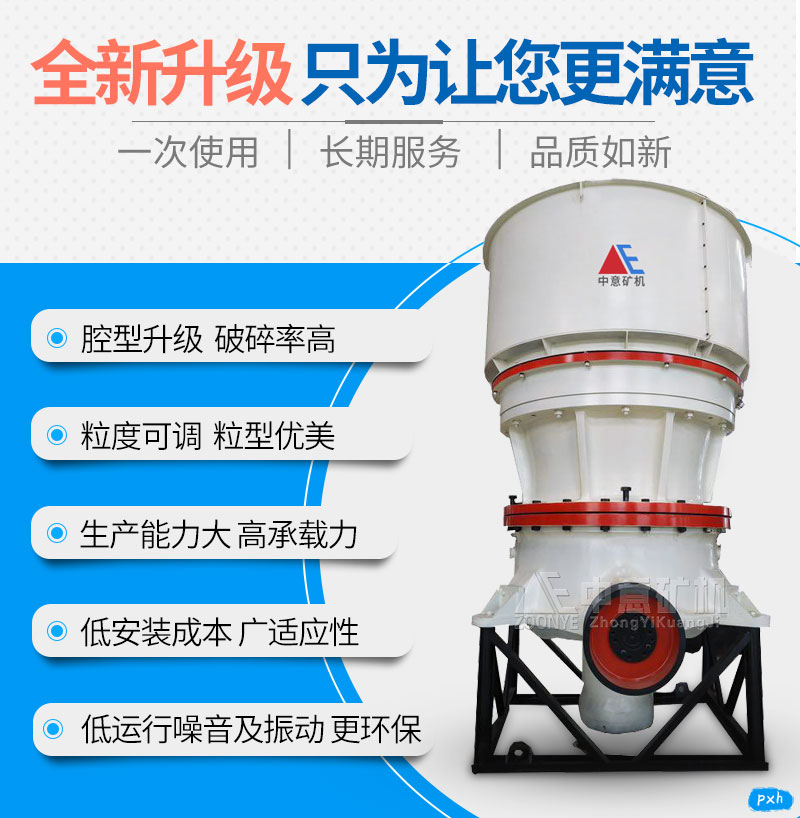 2、單缸液壓調(diào)節(jié)主軸、錐體、整體升降達到調(diào)節(jié)排料口大小的目的,并解決了側(cè)缸和上機架傾斜損壞主機的問題。