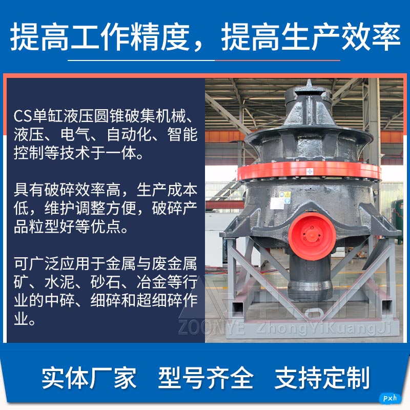 單缸圓錐破碎機是我公司吸收國外技術(shù),結(jié)合圓錐破碎機領(lǐng)域的創(chuàng)新技術(shù)進展研發(fā)設(shè)計的一種高效率圓錐破碎機。外形非常的簡潔緊湊, 通過底部單缸的設(shè)計結(jié)構(gòu),完成了排料口直接調(diào)節(jié)、預(yù)防過鐵、 清腔的三個重要功能。因此,單缸液壓圓錐破碎機沒有外置的排料口調(diào)節(jié)機構(gòu), 也沒有外部液壓缸或者彈簧的防過鐵裝置,整體外形結(jié)構(gòu)簡單緊湊。單缸液壓圓錐破碎機分為多種沖程,分別應(yīng)用于粗碎和中細碎作業(yè), 廣泛應(yīng)用于冶金、建筑、公路、化工、建材工業(yè)中,適于破碎高硬度和高磨蝕性的礦石及巖石。